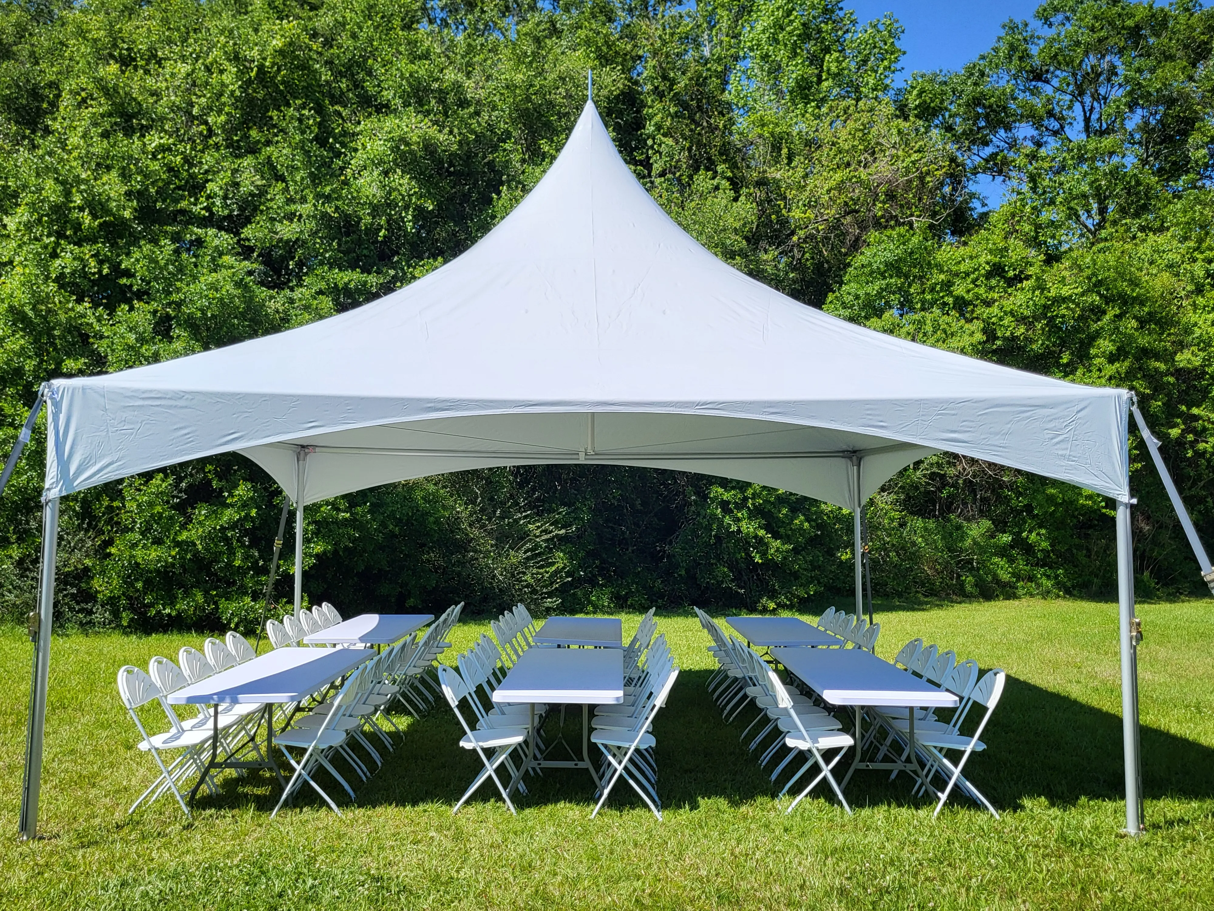 Tent setup is included with all tent rentals. Tables and chairs are delivered and placed under the tent or in the designated setup area. Full arrangement of tables and chairs is available upon request for an additional fee.